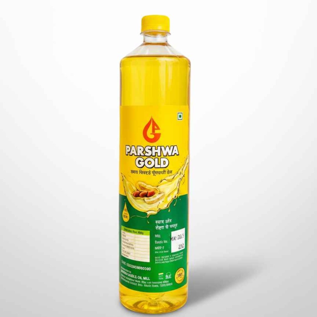 PARSHWA GOLD Groundnut Oil is made from high-quality groundnuts to provide a light texture and pleasant nutty taste. Known for its high smoke point, this oil is suitable for frying, sautéing, and daily cooking. It retains natural nutrients while offering a clean and mild flavor that complements a wide range of cuisines. The 1-litre pack is ideal for households seeking purity, health, and taste in every meal.